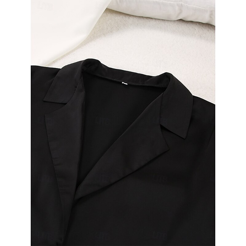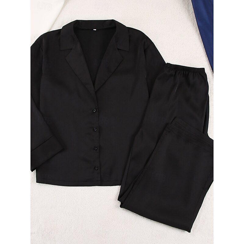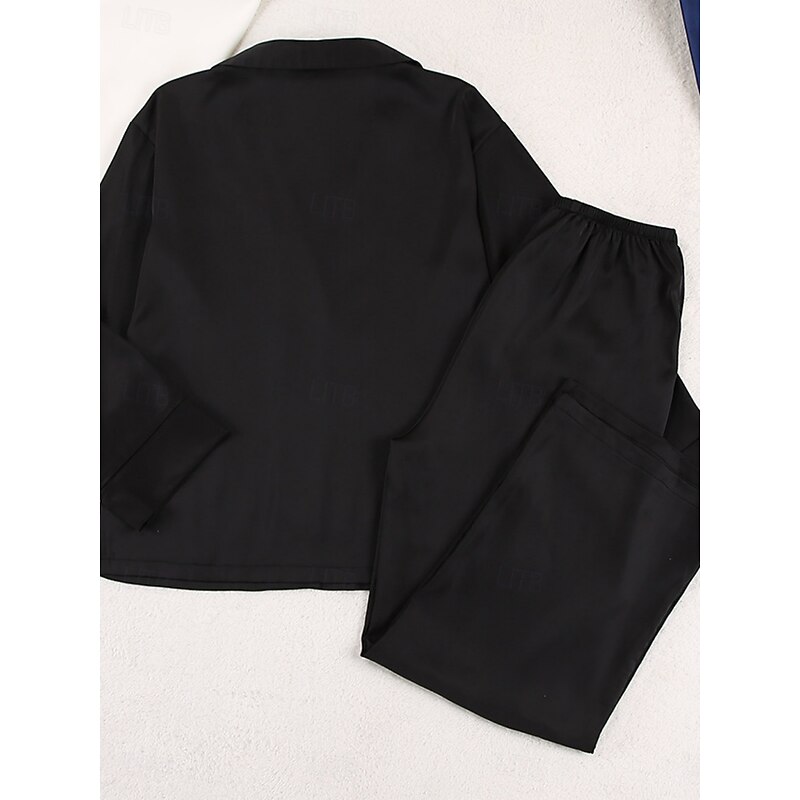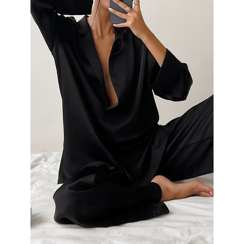 More information about Women's Pajama Set Casual Comfort Pure Color Button Up Elastic Waist Shirt Pant Home Daily Long Sleeve Shirt Collar Black Green Summer Spring Fall Regular Fit