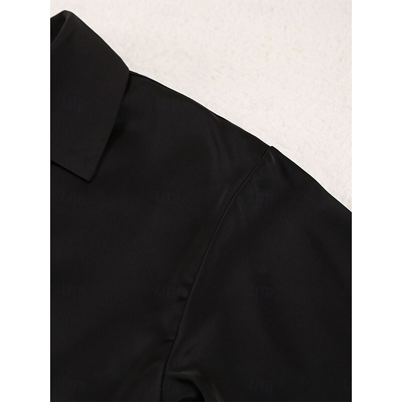 Women's Pajama Set Casual Comfort Pure Color Button Up Elastic Waist Shirt Pant Home Daily Long Sleeve Shirt Collar Black Green Summer Spring Fall Regular Fit 6