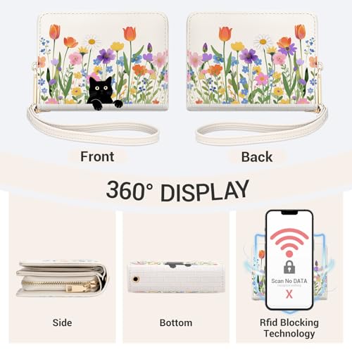 Origin: ImportedClosure type: SnapLining: PolyesterDetachable Wristlet Card Organizer: Women's Wristlet Wallet with Accordion Card Slots. Switch to wristlet mode for hands-free carrying. Features 11 accordion pockets plus 5 card slots and ID window. Snap and zipper secure contents. Perfect small women's wallet for crossbody bags, shoulder bag and backpackCompact Bifold Purse with ID Window: Small Leather Purse for Women (4.6x3.5x1.2in) - 16 Card Capacity. Zipper compartment holds cards and coins. Slim bifold wallet design fits pockets and clutch purses. Ideal travel wallet with driver's license windowPractical Everyday Security: This small wallet for women features a snap flap and a full zipper closure for excellent physical protection of your cards and cash. This cute wallet keeps your contents secure from pickpockets and accidental spills, making it a reliable and sophisticated wallet for women on the goDurable Vegan Leather Credit Card Holder: Scratch-Resistant Ladies Wallet - Premium PU Leather Build. Vegan leather credit card holder with quadruple stitching. Lightweight leather wallets for women withstand daily use no matter you are walking dog, shopping or travellingFloral Print Gift Wallet Cute Wallet for Teen Girls & Women - Convertible Wristlet Purse Detachable wristlet purse for brunch and shopping. Strawberry cat floral print wallet will be a perfect gift for women and teens Perfect for everyday use. first-class materials and excellent craftsmanship ensure long-lasting durability.