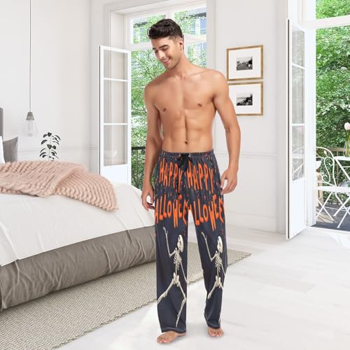 HOT ! Qilmy Halloween Dancing Skeleton Men's Cotton Pajama Pants, Lightweight Lounge Sleepwear with Drawstring and Pocket