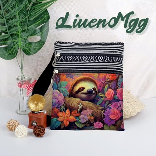Floral Sloth Messenger Bag Small Ethnic Pattern Printed Adjustable Strap Crossbody Zipper Bag Floral Sloth Phone Bag Wallet Cute Shoulder Handbag for Women 5