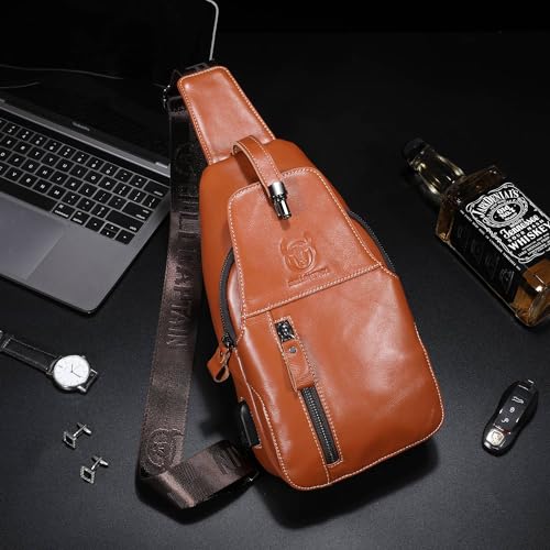 More information about Cross Body Bag Genuine Leather Sling Bags for Men Shoulder Bag with USB Charging Port Backpack for Travel