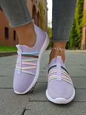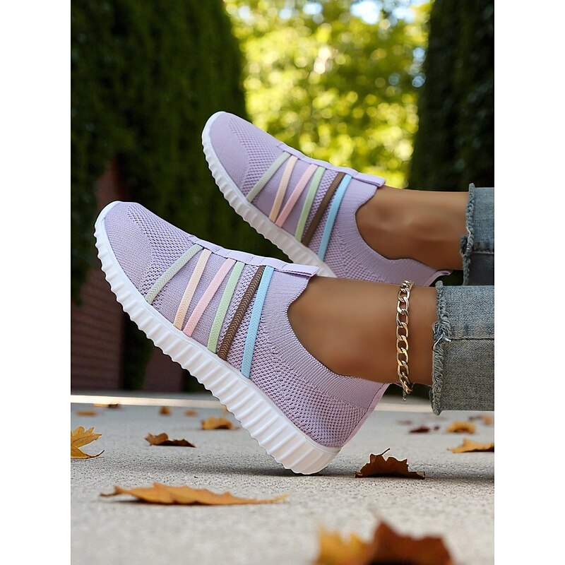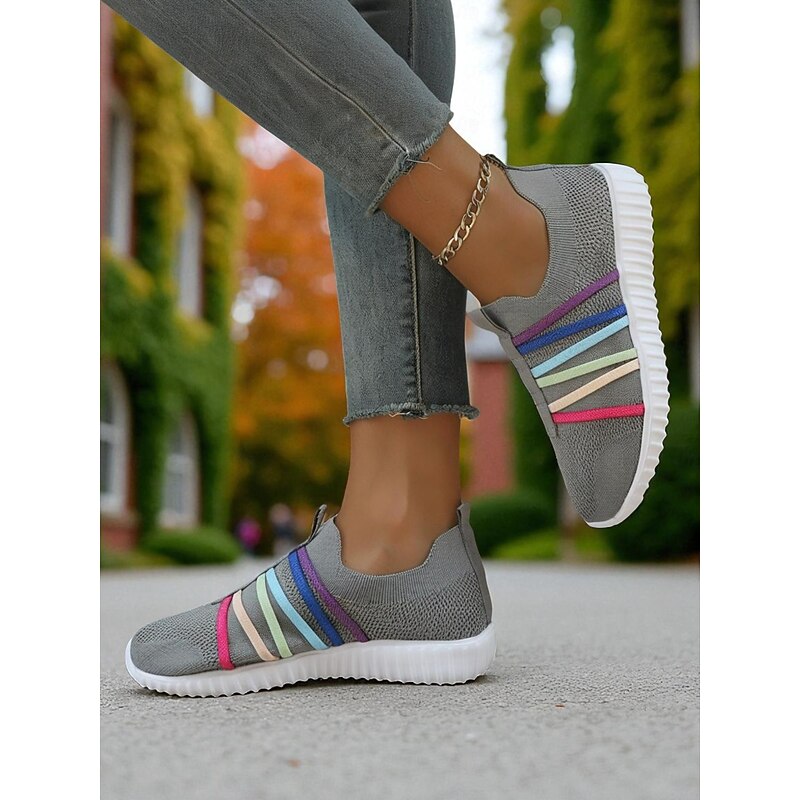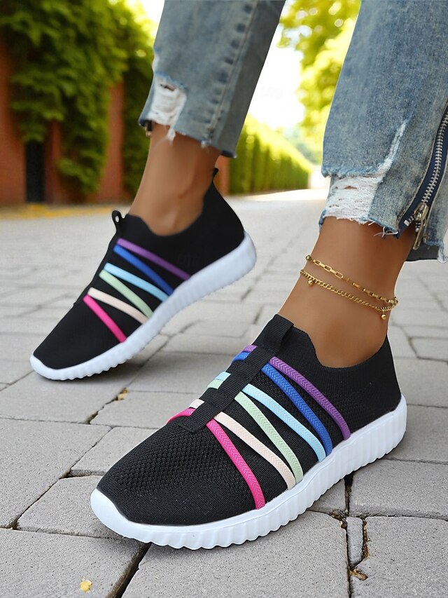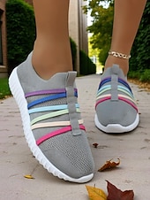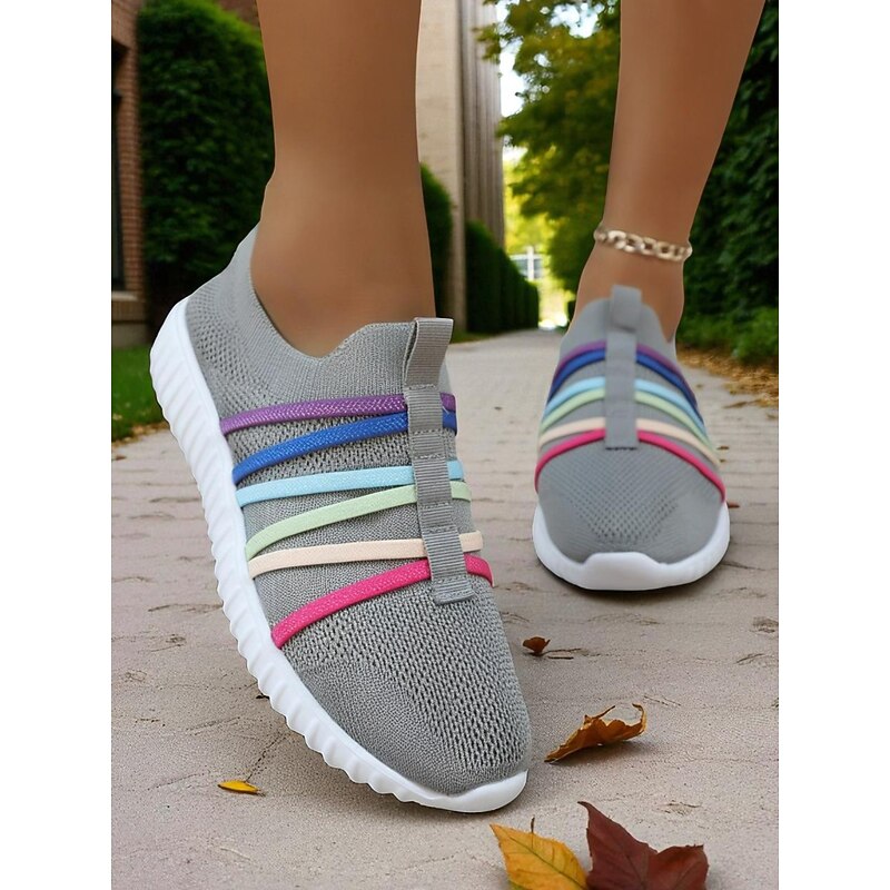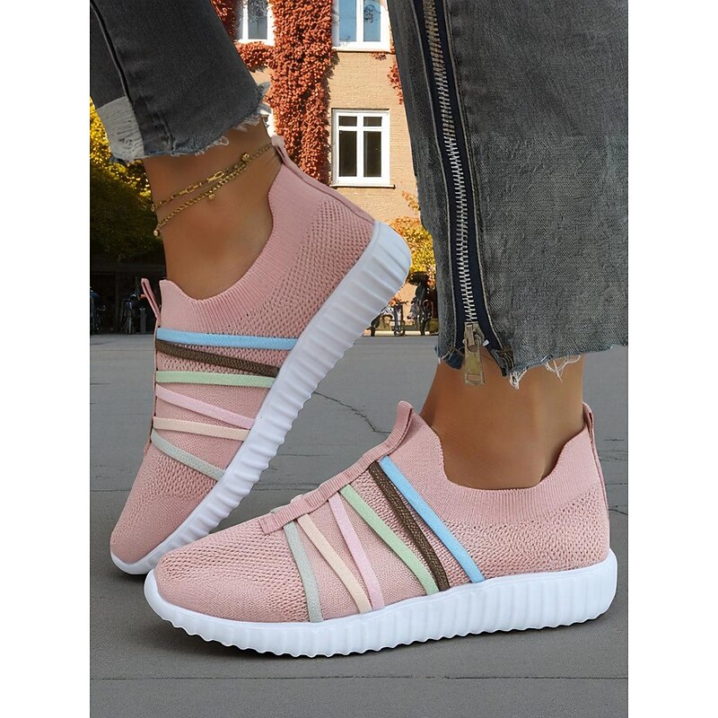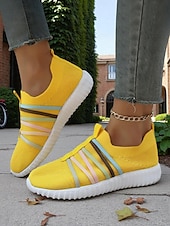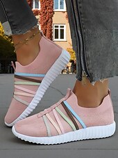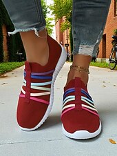 More information about Women's Red Flyknit Slip-On Sneakers – Breathable Lightweight Walking Shoes with Colorful Elastic Straps for Travel, Weekend Outings and Casual Daily Wear