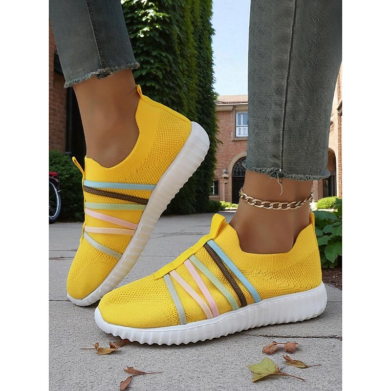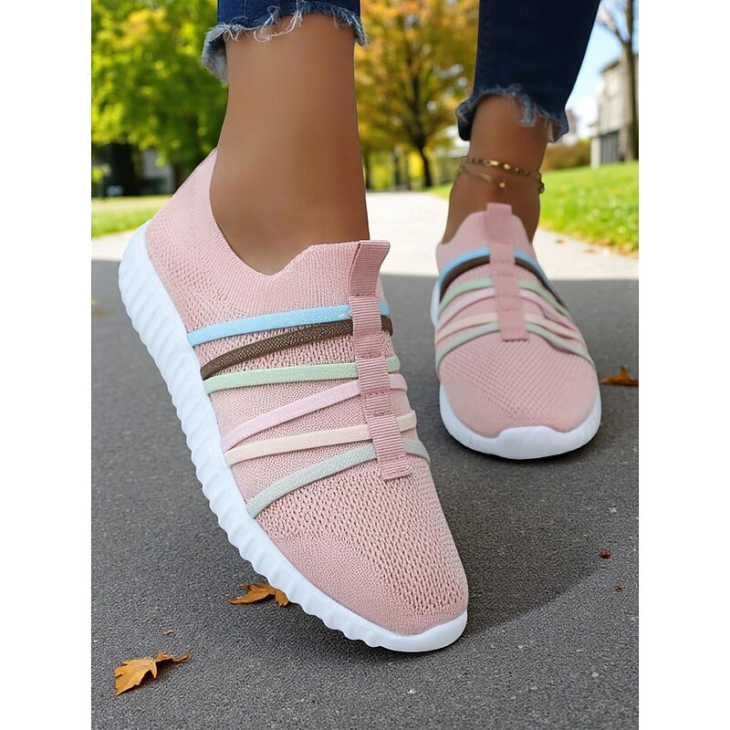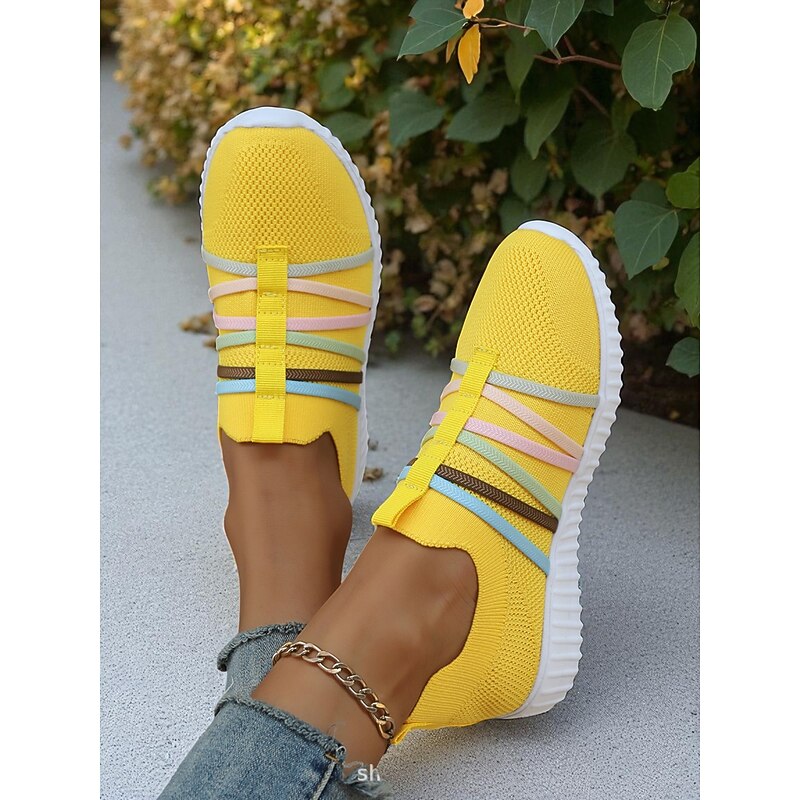 HOT ! Women's Red Flyknit Slip-On Sneakers – Breathable Lightweight Walking Shoes with Colorful Elastic Straps for Travel, Weekend Outings and Casual Daily Wear