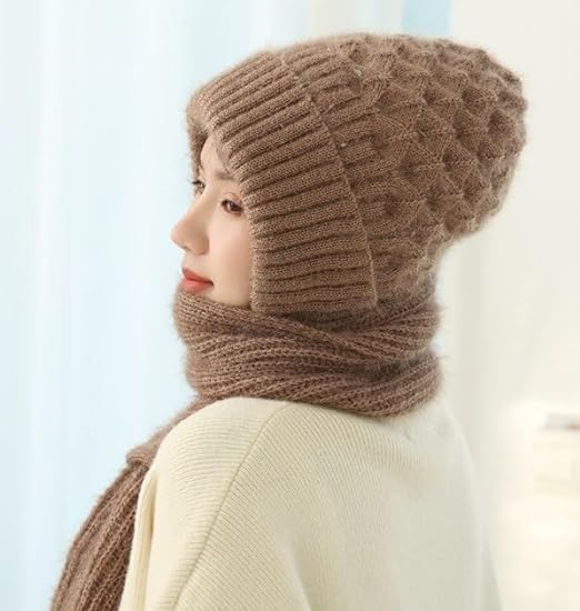 • Warm and Stylish: Integrated Ear Protection Windproof Cap Scarf Provides Better Warmth Retention, Long Earmuffs Cover the Ears, And the Scarf Wraps Around the Neck for Full Coverage, Comfortable to Wear in Cold Weather.