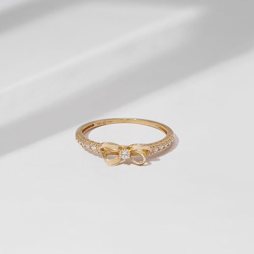 HOT ! Amazon Essentials 10K Gold Dainty Bow Ring set with Round Cut Infinite Elements Zirconia (previously Amazon Collection)