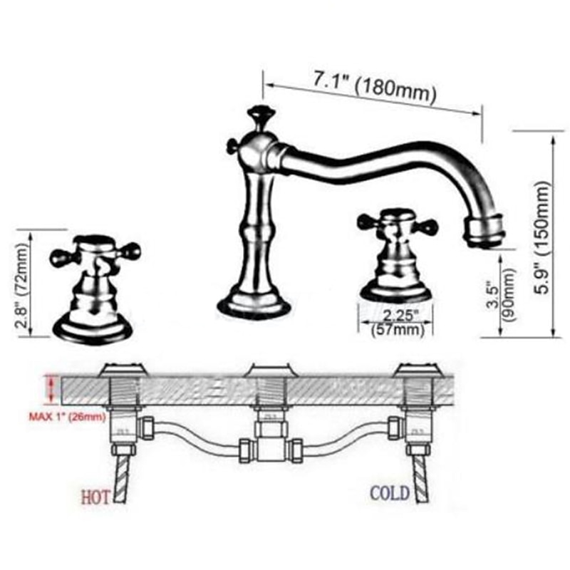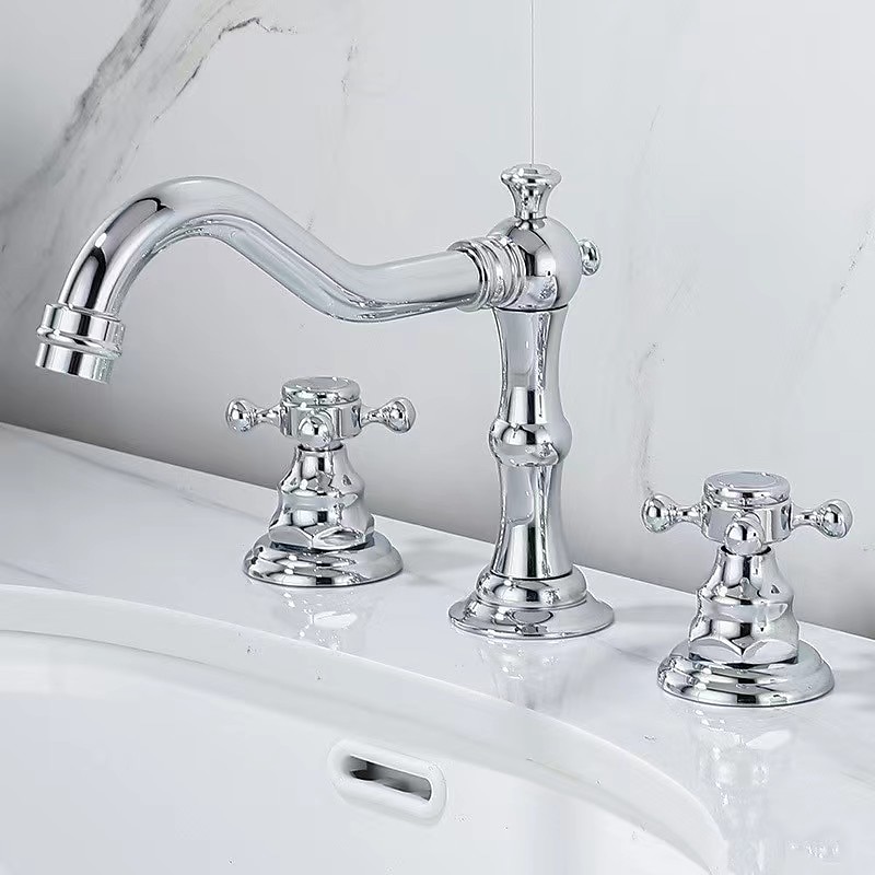 More information about Bathroom Sink Faucet,Widespread Two Handle Three Holes, Brass Bath Taps, Brass Bathroom Sink Faucet Contain with Cold and Hot Water