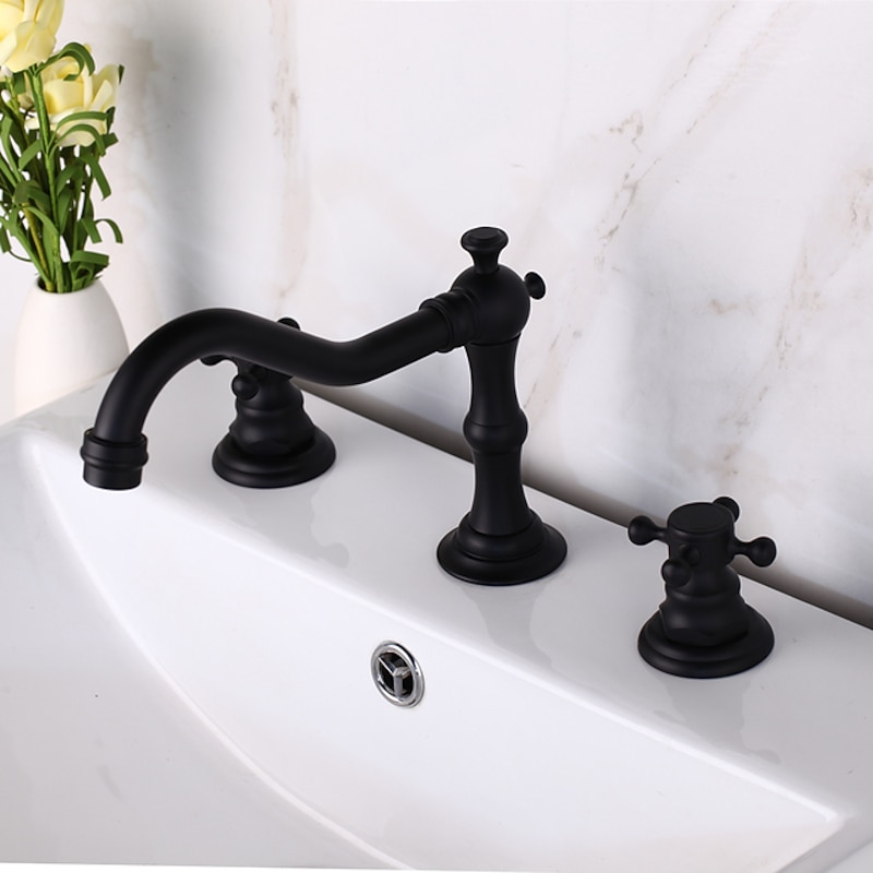 Bathroom Sink Faucet,Widespread Two Handle Three Holes, Brass Bath Taps, Brass Bathroom Sink Faucet Contain with Cold and Hot Water 1