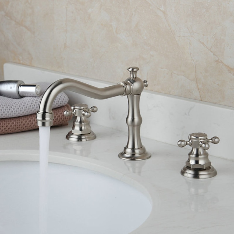 Bathroom Sink Faucet,Widespread Two Handle Three Holes, Brass Bath Taps, Brass Bathroom Sink Faucet Contain with Cold and Hot Water 7