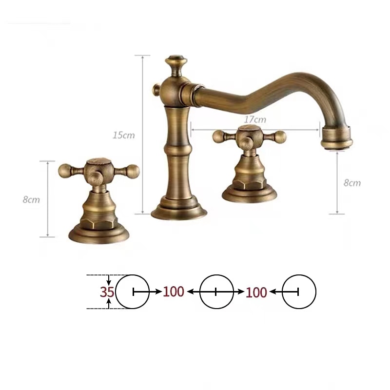 Bathroom Sink Faucet,Widespread Two Handle Three Holes, Brass Bath Taps, Brass Bathroom Sink Faucet Contain with Cold and Hot Water 17