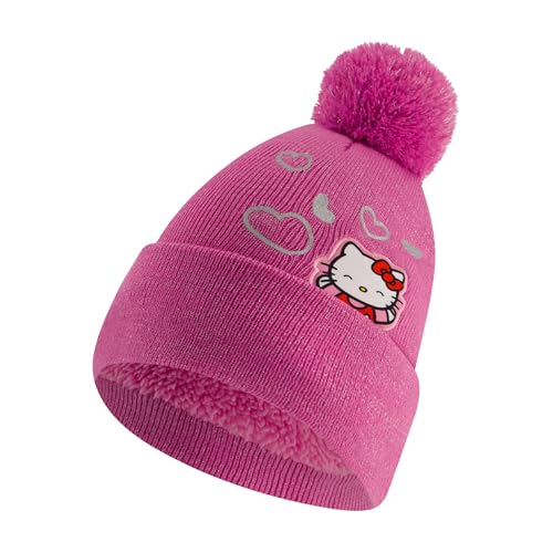 • HELLO KITTY BEANIE CAP: This cute and stylish winter hat features a distinctive ribbed pink design and cute embroidered image of Hello Kitty peeking over the edge of the cuff, surrounded by silver hearts, and matching pink gloves, making this an excellent gift for the Hello Kitty fan in your life