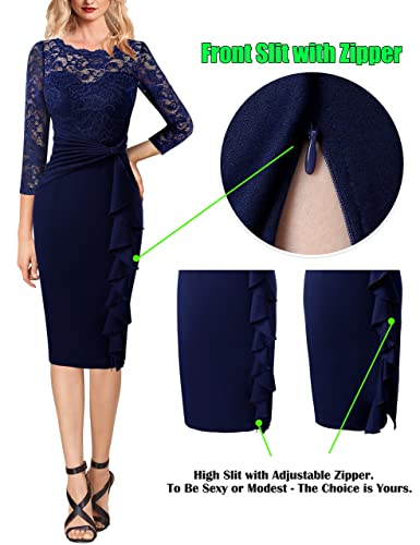 VFSHOW Womens Floral Lace Ruffle Peplum Bow Split 3/4 Sleeve Cocktail Party Bodycon Pencil Dress 3
