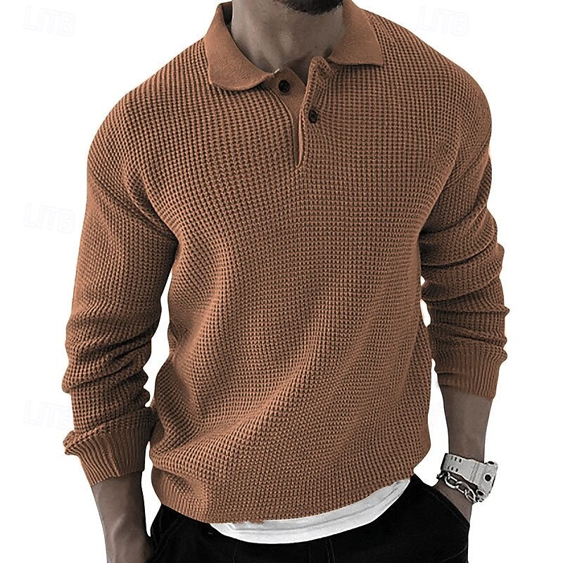Crafted from high-quality acrylic, this men's pullover sweater features a waffle-knit texture that offers warmth and a cozy feel, perfect for the fall and winter seasons. The micro-elasticity ensures both comfort and ease of movement.
