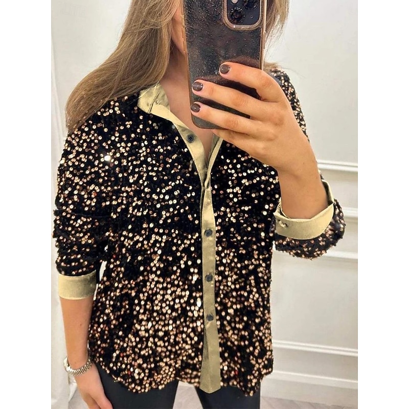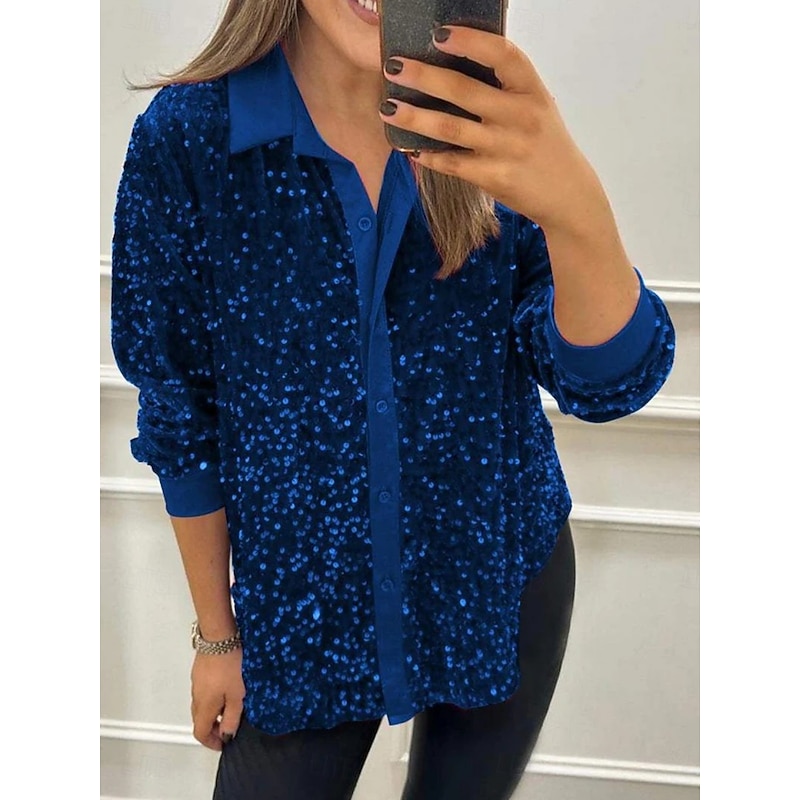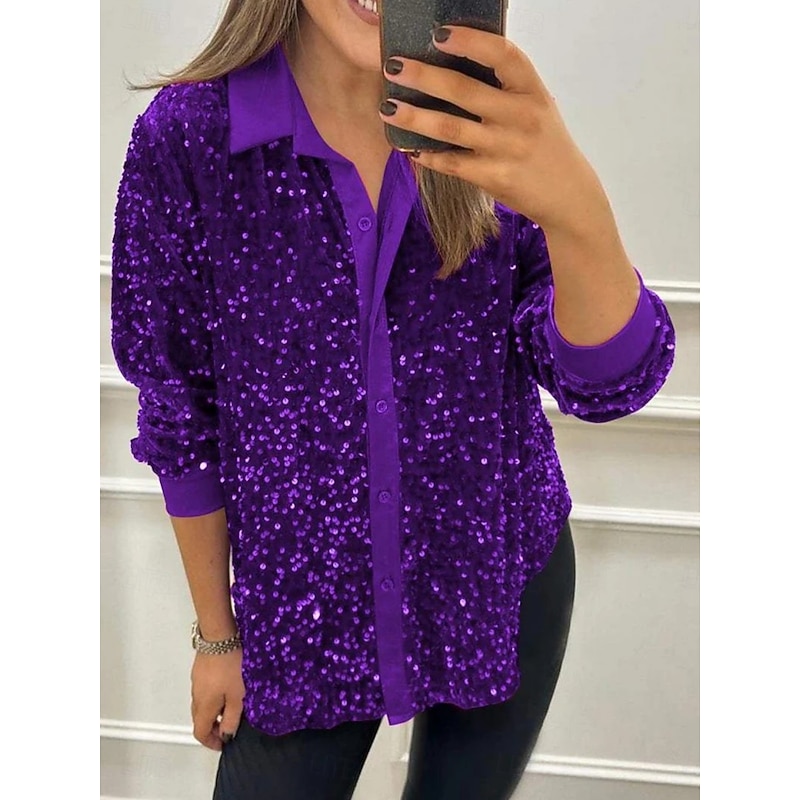 More information about Women's Shirt Blouse Plain Stylish Modern Long Sleeve Shirt Collar Regular Tops Daily Sequins Buttons Pocket Black Yellow Red Blue Purple Summer