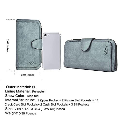 • 👍 AMPLE ROOM: 19.5 x 10 x 4.6 (LxWxH) cm, 14 Card Slots, 5 Cash Pockets + 1 Interior Zipper Pocket + 2 Photo ID Slots. Practical multi slots wallets are apt to hold cash, cards, checks, coin, and other petty thing