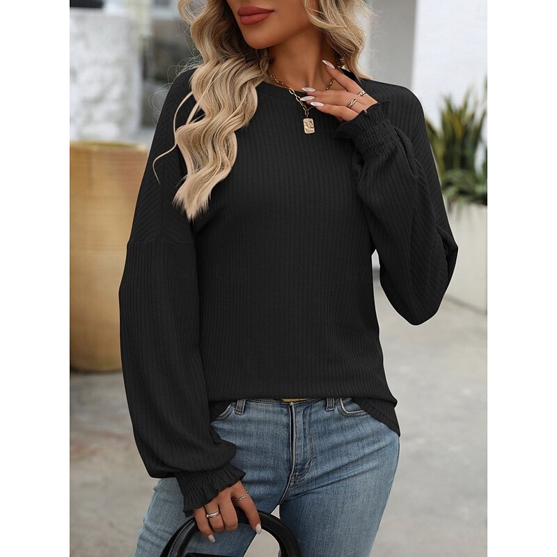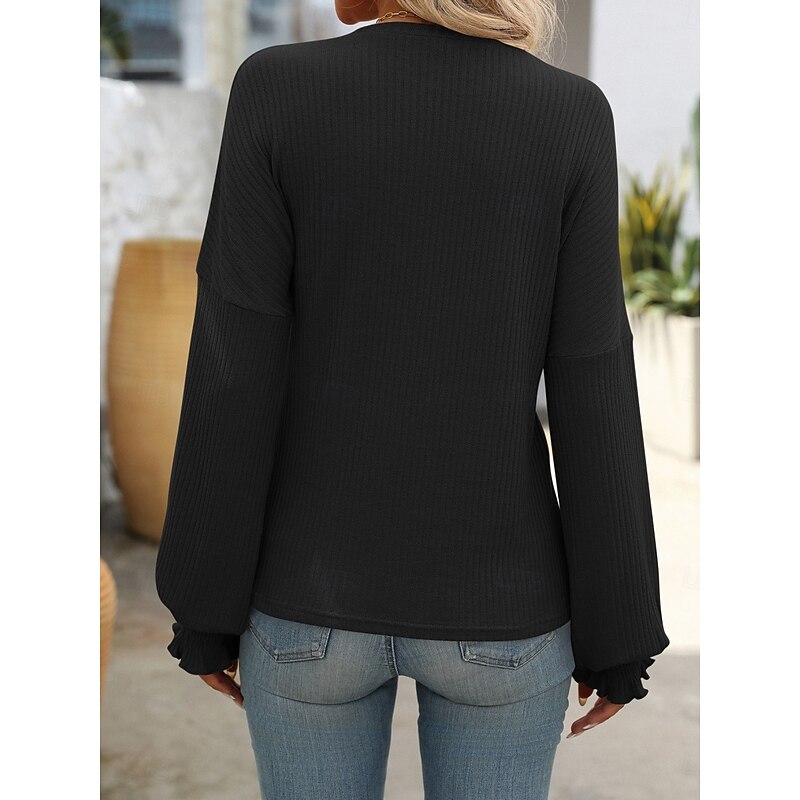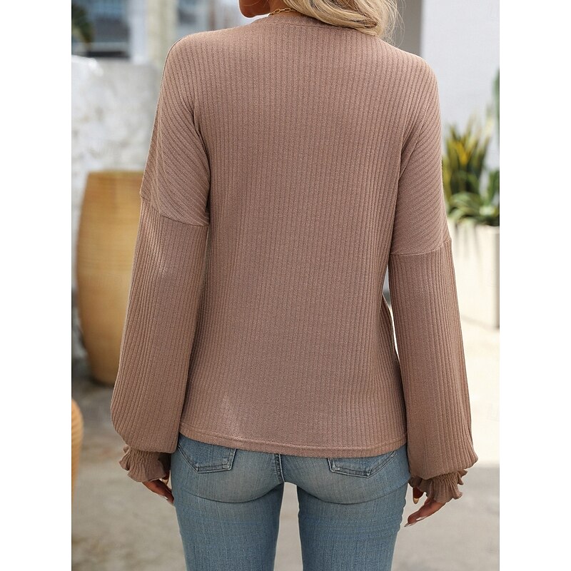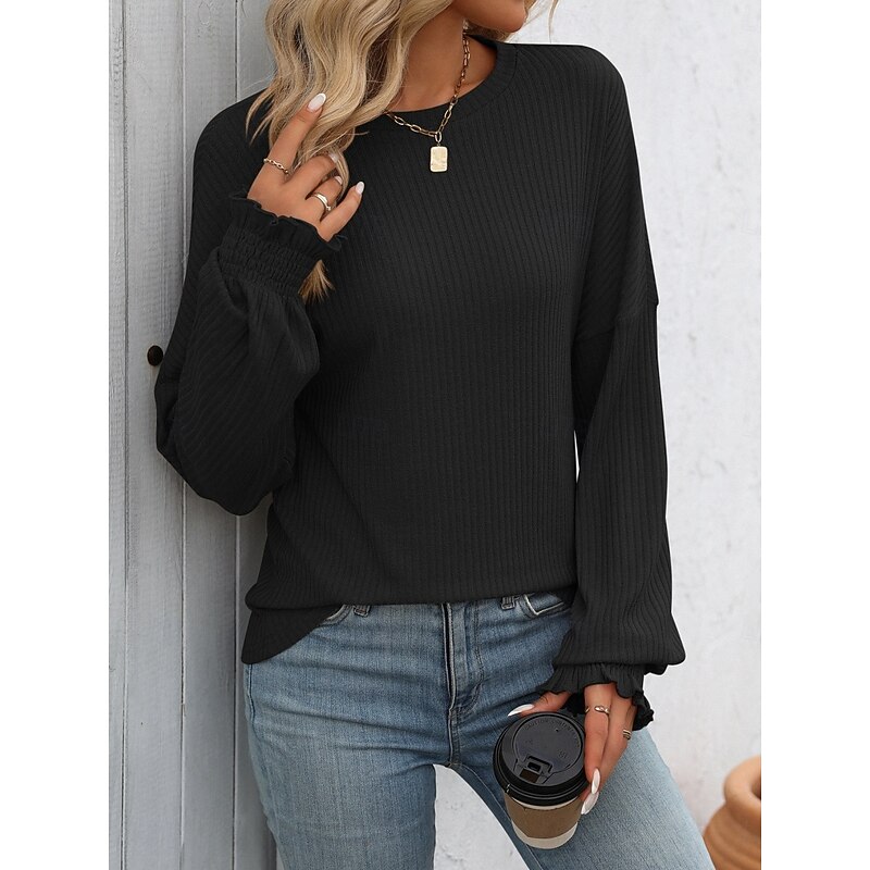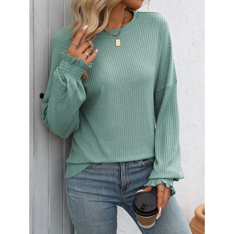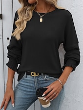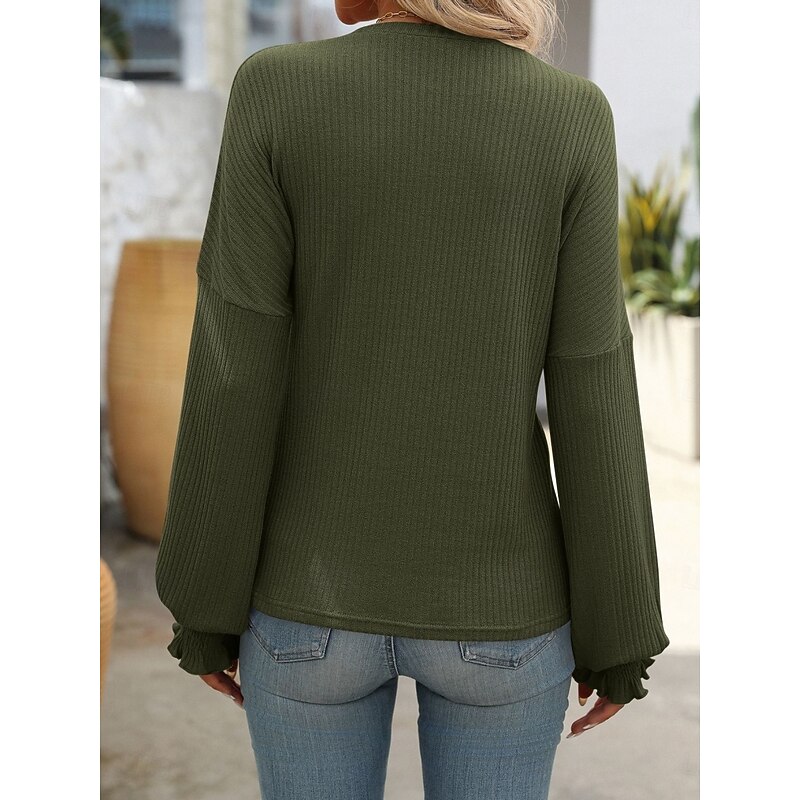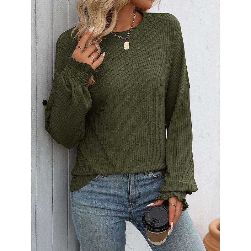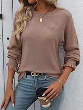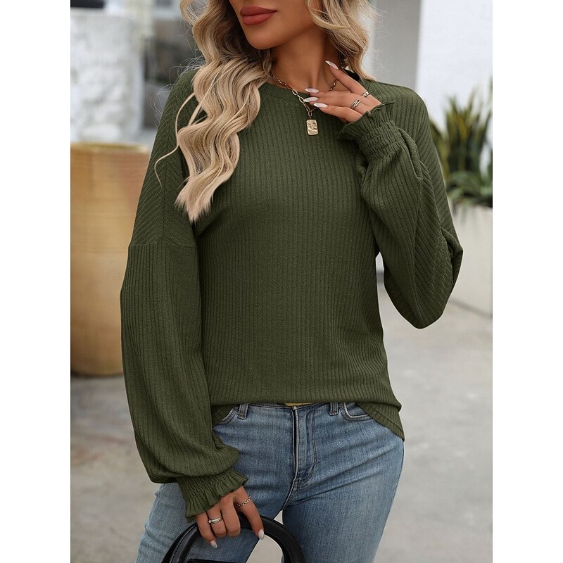 More information about Women's Blouse Solid Color Stylish Casual Long Sleeve Crew Neck Regular Tops Daily Black Army Green Brown Green Khaki Spring Fall