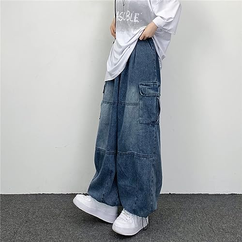 • Features: Fashion jeans pants for women, high waist, straight legs, wide leg, with two big knee pockets, solid color, drawstring elastic waist design, vintage Y2K 90s style.