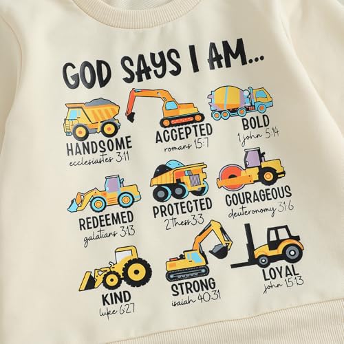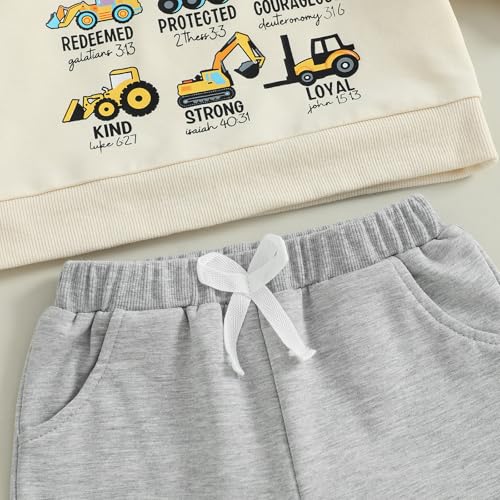 Toddler Boy Fall Clothes Kids Baby Excavator Outfit Tractor Sweatshirt + Solid Joggers Pants Set Winter Outfits 4