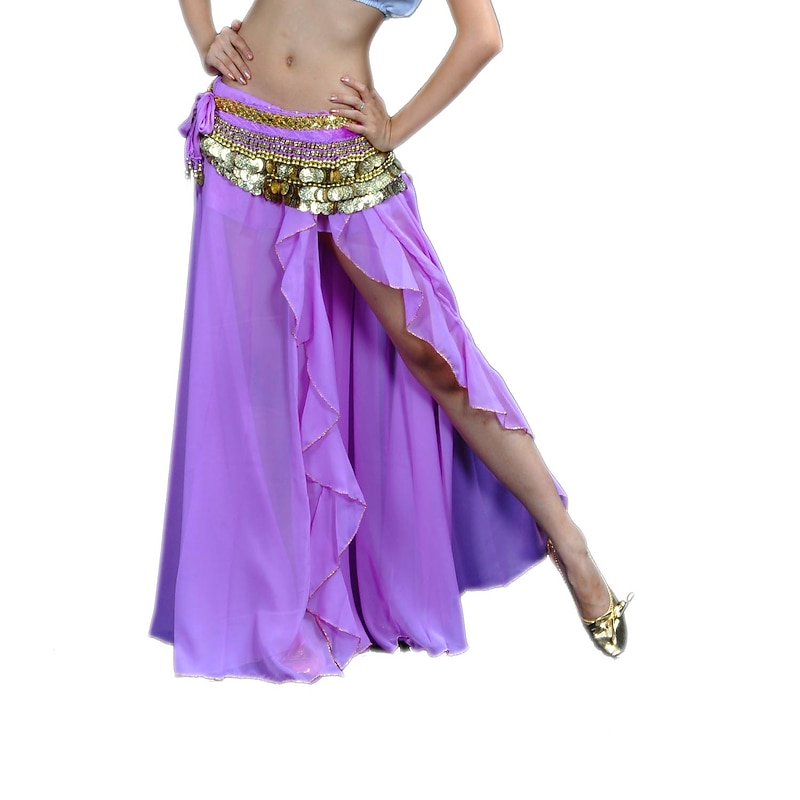 Belly Dance Skirt Split Front Women's Training Performance Dropped Chiffon (WITHOUT Hip Scarf) 1