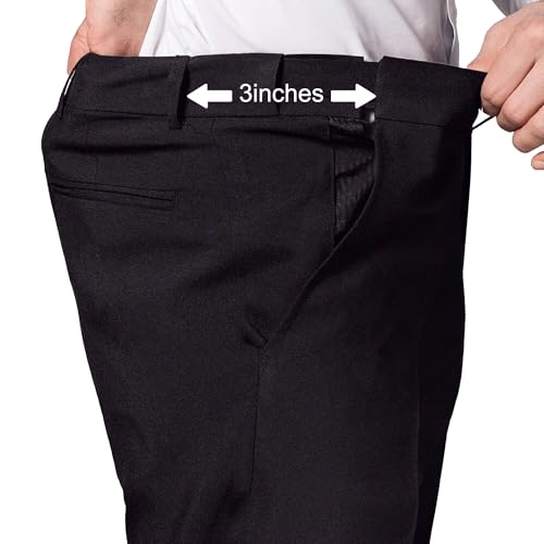 Men's No Iron Pleated Dress Pants Expandable Waist Regular Fit Premium Comfort Slacks 6
