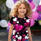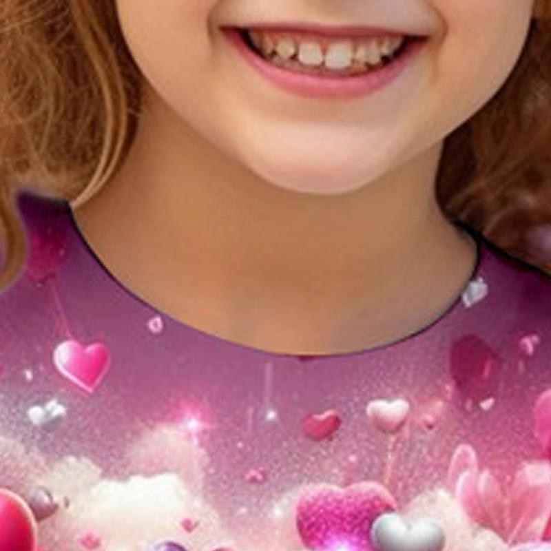 More information about Valentines Girls' 3D Heart Tee Shirt Pink Short Sleeve 3D Print Summer Active Fashion Cute Polyester Kids 3-12 Years Crew Neck Outdoor Casual Daily Regular Fit