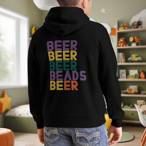Kids Funny Retro Beer Beads Mardi Gras Party Carnival Men Women Boys Girls Lightweight Kangaroo Pocket Fleece Hoodies 3