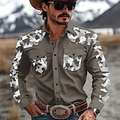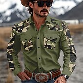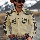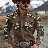 More information about Men's Camouflage Western Shirt Long Sleeve Western Style Sports Outdoor Spring Fall Turndown Button Up 2 Pockets Brown Green Beige Gray