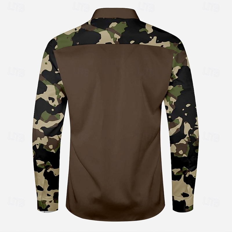 Men's Camouflage Western Shirt Long Sleeve Western Style Sports Outdoor Spring Fall Turndown Button Up 2 Pockets Brown Green Beige Gray 6