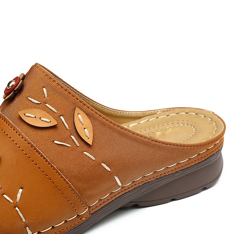 More information about Women's Slippers Clogs Wedge Sandals Plus Size Outdoor Slippers Outdoor Daily Solid Color Hollow-out Summer Wedge Heel Round Toe Elegant Casual Minimalism PU Loafer Wine Black Brown