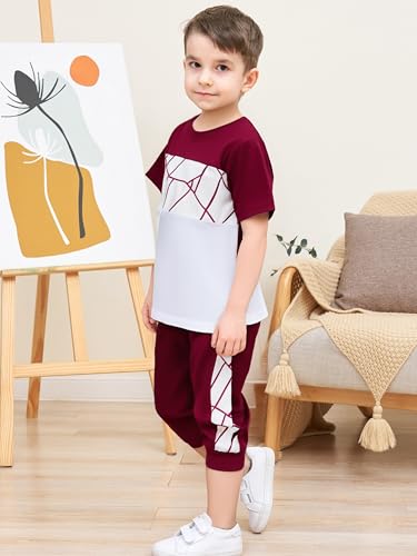 • CUTE BOY SHORTS CLOTHING SET: Clothes Geometric Printed Color Blocking Top ; Color blocked Pants Set; Cute 2 pieces little boy Spring and Summer clothing.