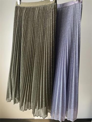 HOT ! Women's Solid Pleated Midi Skirt Elastic Waist Loose Fit Casual Daily Skirt