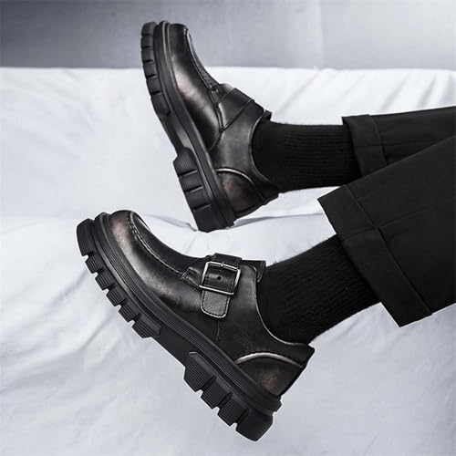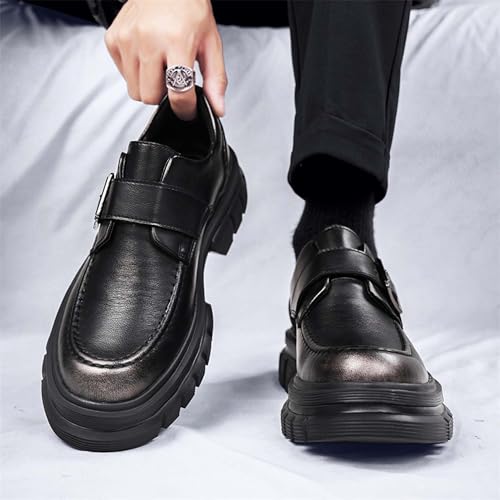 Men's Retro Loafers with Buckle Design Slip-Resistant Thick Soles Business Formal Shoes Fashionable Urban Work Uniforms Wedding Leather Shoes,Black, Brown 5