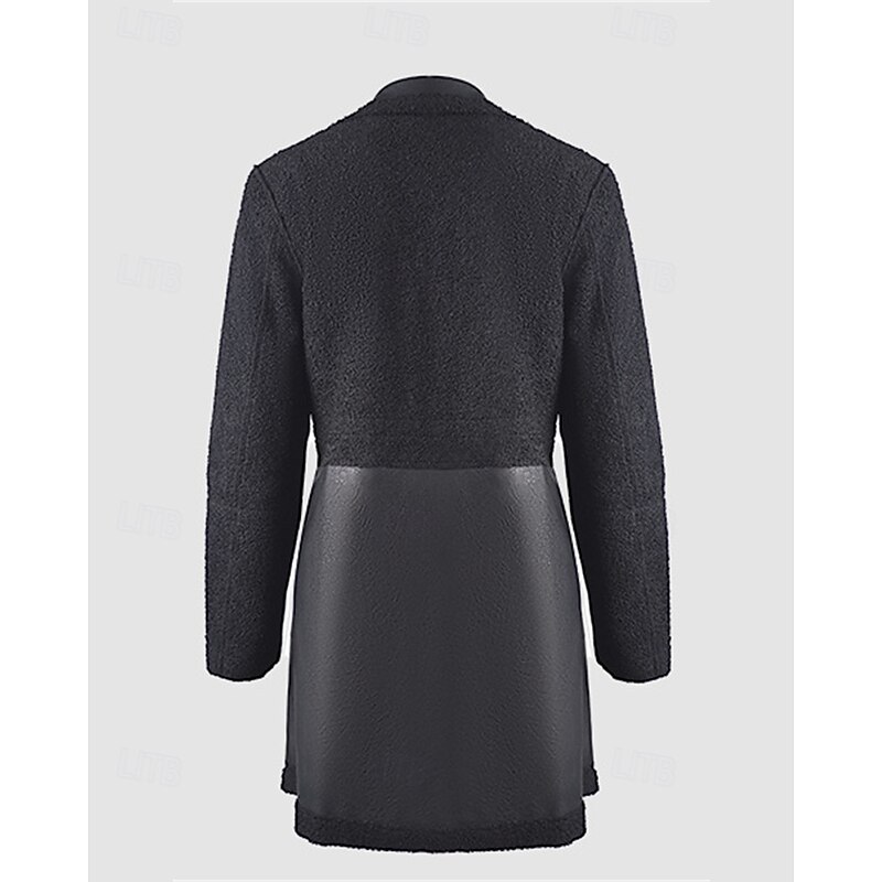 More information about Women's Faux Leather Jacket Winter Jacket Warm Comfortable Pocket Buttons Fashion Modern Casual Plain Going out Weekend Single Breasted Regular Peaked Lapel Regular Fit Long Sleeve Outerwear Black