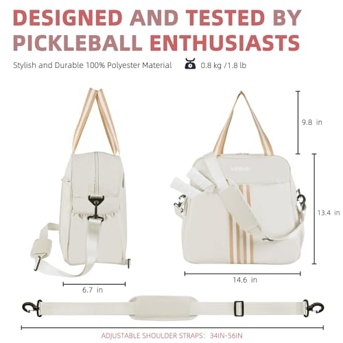 • ✅【PREMIUM MATERIAL & DURABILITY】Made from 100% Polyester waterproof Nylon fabric, this pickleball tote bag is lightweight, comfortable and resistant to dust, scratches & water. From reinforced handle to meticulously stitched seams, smooth and durable mental zippers ensure a longer lifespan. It can be used for a long time without tearing and optimal protection for your equipment, suitable for all kinds of outdoor sports, such as pickleball/ badminton/ tennis/ basketball/ football/ park.