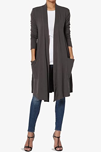 HOT ! Women's Casual Long Sleeve Pocket Open Front Jersey Knit Knee Length Cardigan