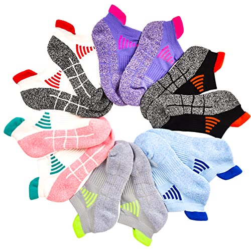J.WMEET Womens Ankle Athletic Socks Low Cut Cushioned Breathable Running Performance Sport Tab Cotton Socks 6 Pack