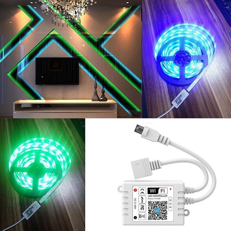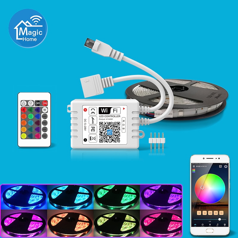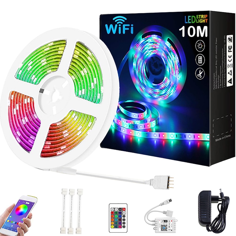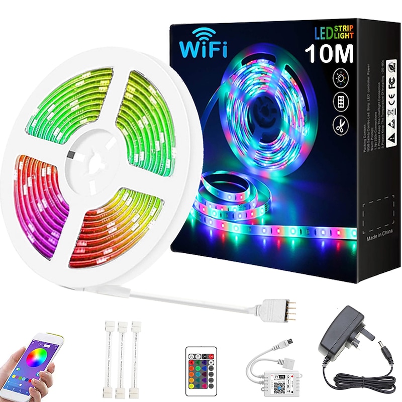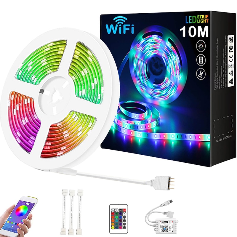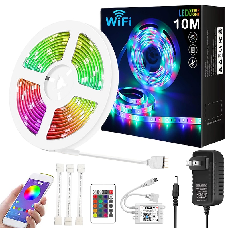 popular ! 10M 33ft Smart SMD 5050 RGB LED Strip Light WIFI App Controlled Music Sync Work with Alexa Google Home Kitchen TV Party 180 LEDs with 24-Key Controller DC12V