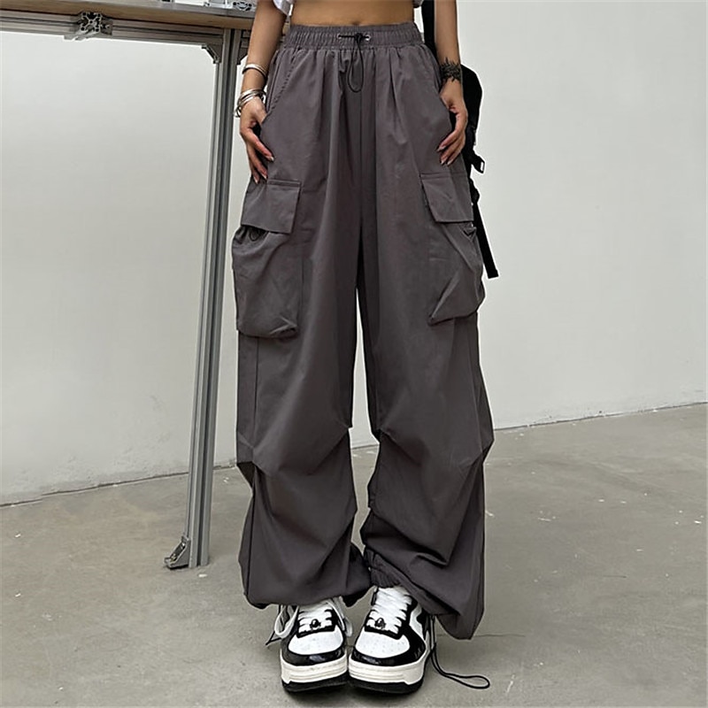 More information about Women's Cargo parachute pants Wide Leg Trousers Baggy Full Length Baggy Micro-elastic High Waist Fashion Casual Daily ArmyGreen Black S M Spring & Fall