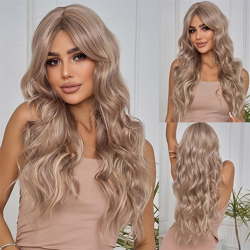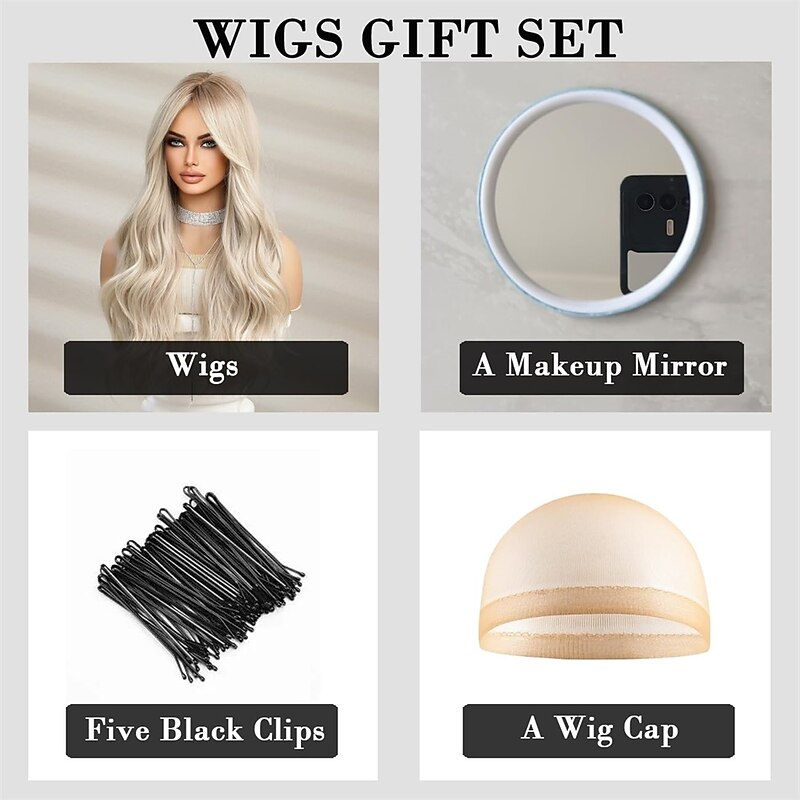 Long Ombre White Blonde Wavy Wigs for Women Natural Synthetic Curly Wig Heat Resistant Fiber Wigs for Daily Cosplay Christmas Party Wigs 27