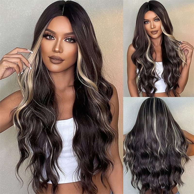 Long Ombre White Blonde Wavy Wigs for Women Natural Synthetic Curly Wig Heat Resistant Fiber Wigs for Daily Cosplay Christmas Party Wigs 28
