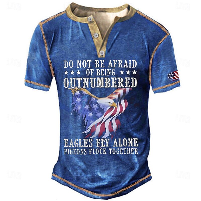 More information about Men's American US Flag Eagle T Shirt Henley Shirt Short Sleeve 3D Print Designer Retro Vintage Street Casual Daily Summer Spring Royal Blue Blue Gray Henley Henley T-Shirt