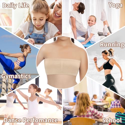Girls Bandeau Top Bra with Clear Straps,Training Bralette Seamless Nude Sports Tube Strapless Longline Crop for Teens 4