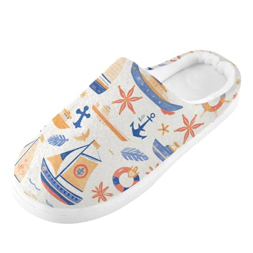 popular ! JUNZAN Blue Boats Anchors Womens Cotton House Slippers Closed Toe Memory Foam Indoor Slippers for Outdoor Birthday Presents 6-7