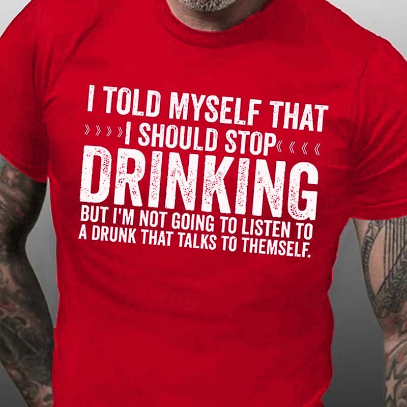 HOT ! Mens Funny T-Shirt: I Won't Listen To A Drunk That Talks To Themself. Humorous Drinking Graphic Tee, Short Sleeve.
