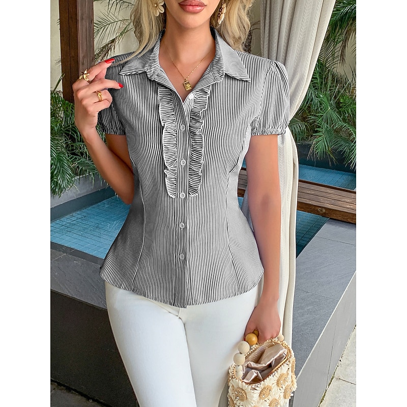 $23.99 - Retro Vintage 1950s Rockabilly Blouse / Shirt Ruffle Striped Fancy Dress Women's Vacation Casual Daily Retro Theme Party Adults Shirt Spring & Summer 2025. Shop for cheap Tops online? Buy at lightinthebox.com on sale today!