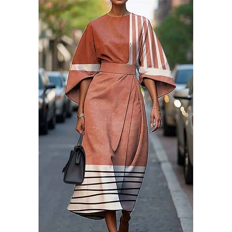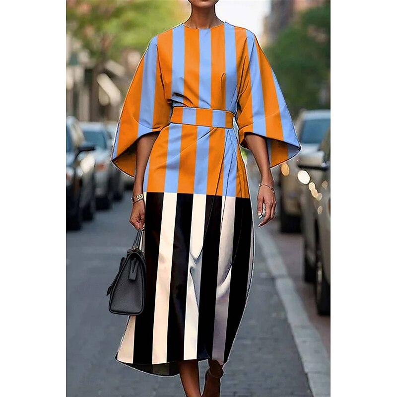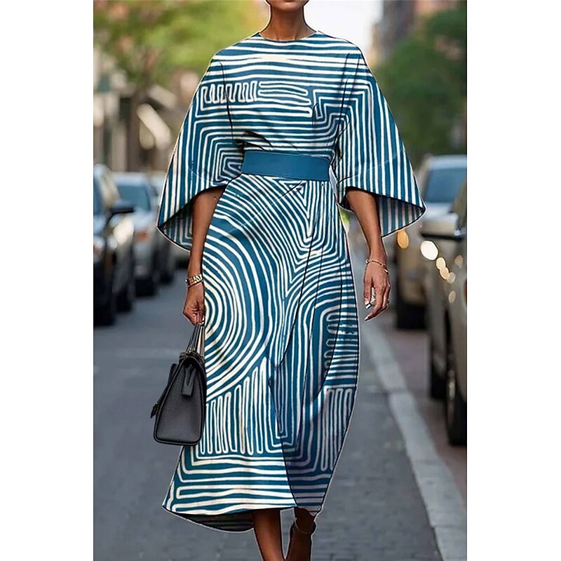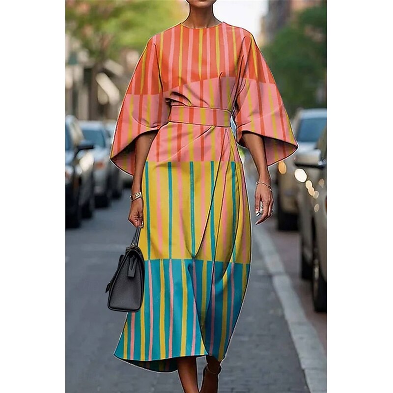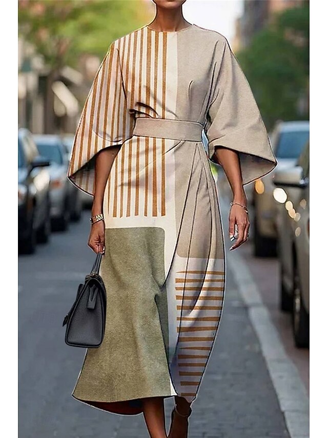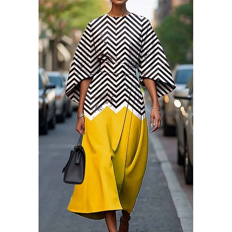 HOT ! Women's Long Dress Maxi Dress Casual Dress Summer Dress Fashion Modern Daily Date Weekend Regular Fit Geometric 3/4 Length Sleeve Crew Neck Black Yellow Light Green Pink Summer