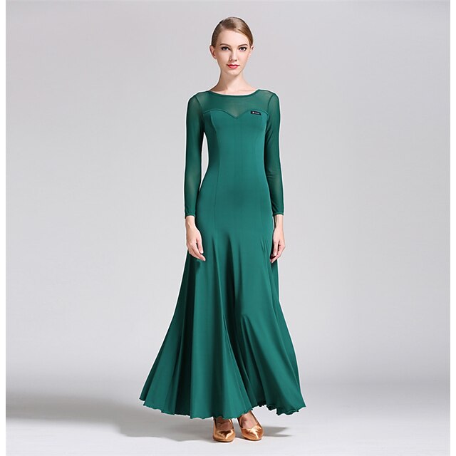 Ballroom Dance Dress Pure Color Tulle Women's Performance Training Long Sleeve Polyester 14