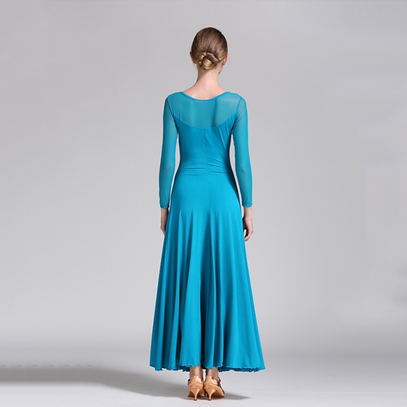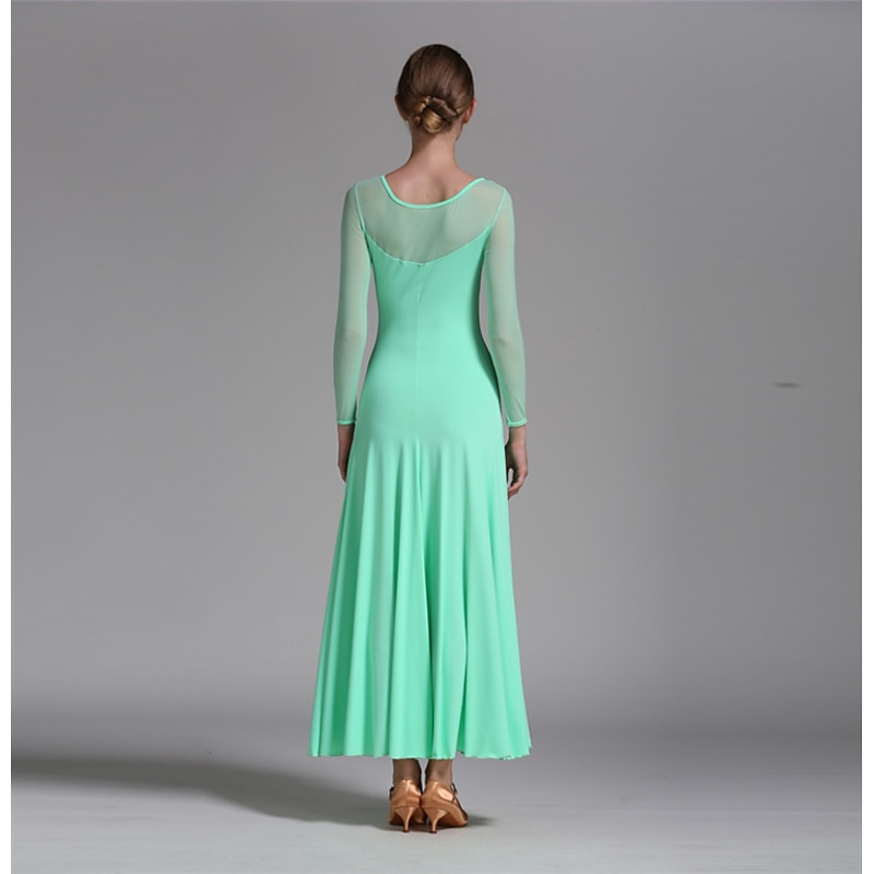 Ballroom Dance Dress Pure Color Tulle Women's Performance Training Long Sleeve Polyester 11