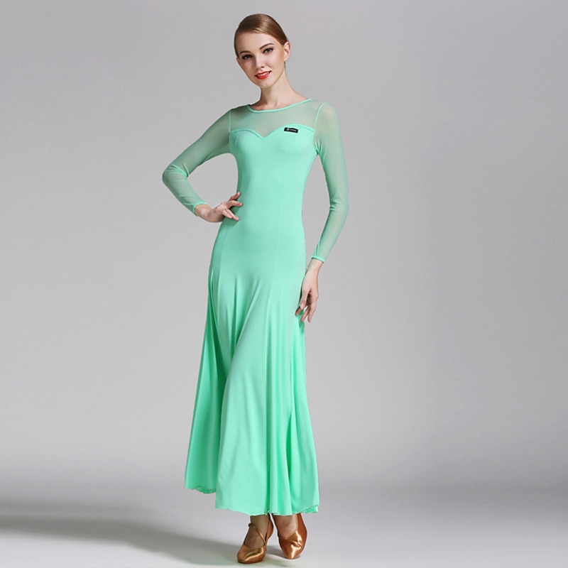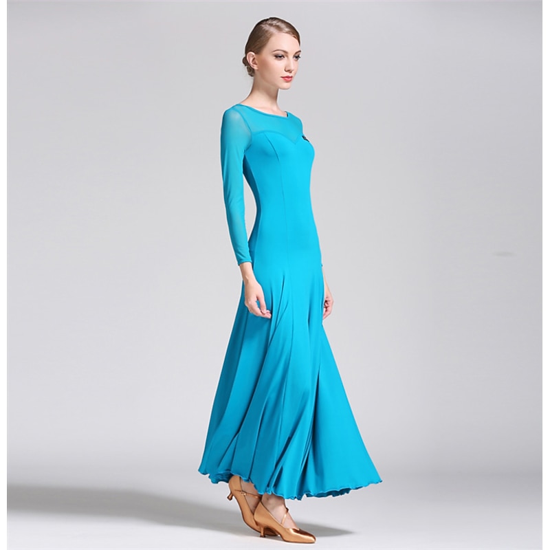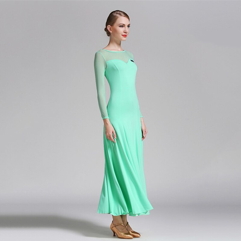 HOT ! Ballroom Dance Dress Pure Color Tulle Women's Performance Training Long Sleeve Polyester
