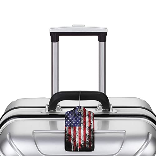 2 Pack American Flag Luggage Tags for Suitcases, Cool Leather Luggage Tag for Travel, Bag Tag Privacy Name ID Card Bag Labels for Friends Adults Kids Tourists 2